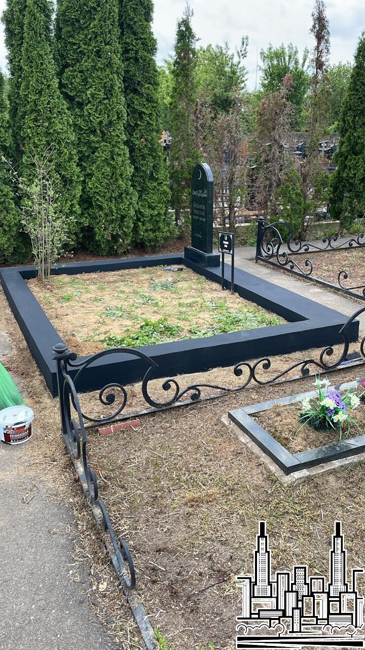 Проект Д109 представляет собой комплекс работ по благоустройству семейного мемориального участка. Задача включала изготовление повторного памятника, покраску существующего бетонного цоколя и установку гранитных балок с кубиками.